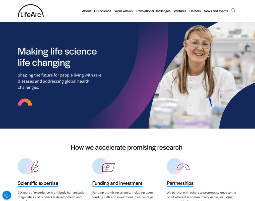 LifeArc’s website now communicates complex science with clarity and speed, scoring high 90s on Core Web Vitals and enabling effortless publishing across departments.